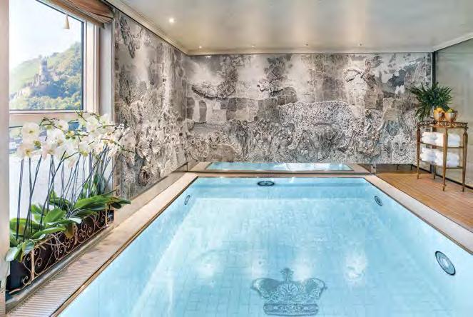 This splendidly elegant ship cruises along the Danube River boasting ultra-luxurious accommodations fit for Empress Maria Theresa herself. As a tribute to the only female ruler in the House of Habsburg, a 10-foot-tall, specially commissioned portrait namesake hangs in the two-story foyer. Travel like royalty surrounded by opulent silk-clad walls, a Murano glass chandelier in the lobby, eye-catching patterns in every room, hand-painted coronets, and a mosaic-tiled enclosed swimming pool.