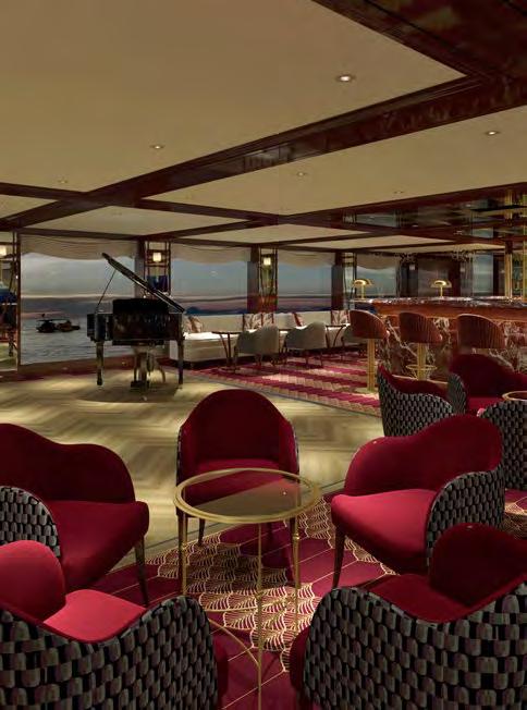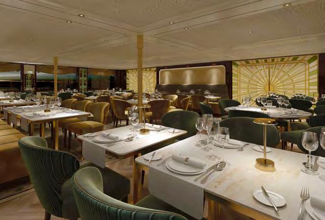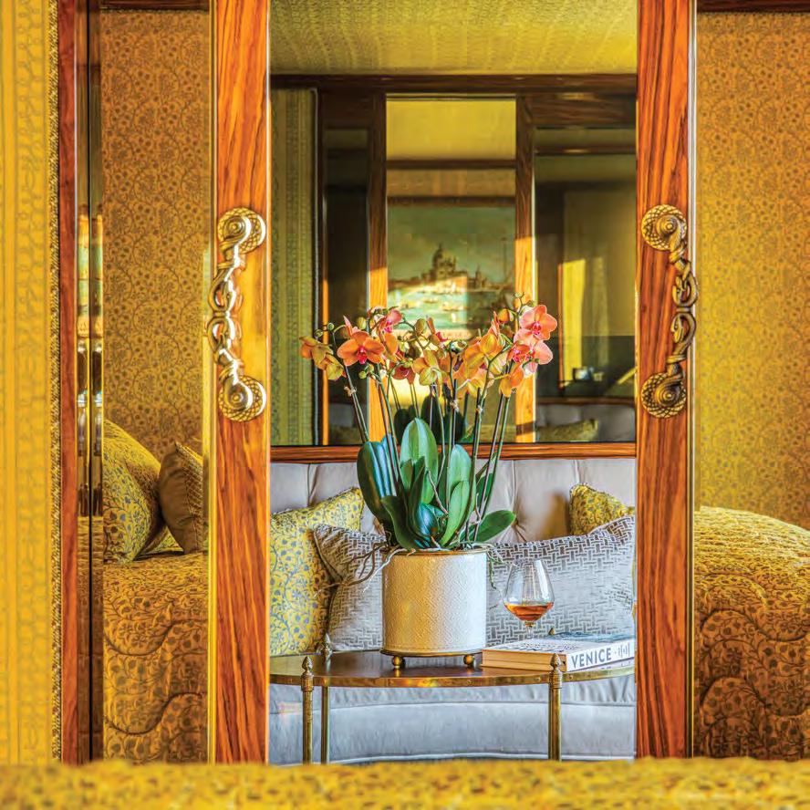 The S.S. La Venezia offers a vibrant yet sophisticated discovery of Venice and its surrounding islands, and stands witness to Italy’s incomparable architecture, artistic contributions, world-renowned fashion, and famed cuisine. The redesign of this Super Ship drew influence from the fine Fortuny fabrics displayed prominently onboard. Murano glass, gilded accents and artistic etched elements pay homage to popular Venetian aesthetics of the early 20th century.