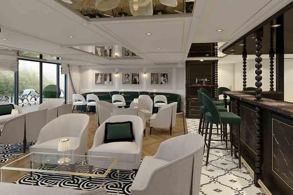 The S.S. Bon Voyage is designed to seamlessly immerse guests in the culture, art, and wine of France. A stunning lobby clad in polished wood, subtle brass details, and a hand-crafted balustrade lend uncommon elegance, while the stylish sun deck boasts the river cruise industry’s first and only infinity pool. An onboard bar lounge, Le Salon Champagne, is resplendent in chic emerald tones with a design inspired by Yves Saint Laurent’s personal abode, Villa Majorelle. In addition to the public spaces, the S.S. Bon Voyage features four spacious suites, and every stateroom features an exquisite marble bathroom. TRANSFORMATION
