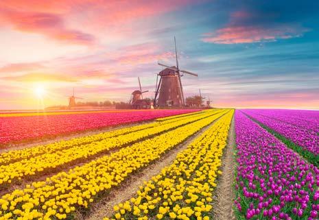 Stroll through the endless rows of tulips at Keukenhof, the world’s most spectacular flower garden, and pedal your way through the natural scenery of the Dutch countryside on Tulips & Windmills