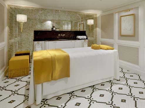 The liberal use of tile throughout the ship creates a motif, evocative of the mosaic-like patterns often featured in Klimt’s paintings. Admire the black, white, and gold tile work of our spa when you book a massage or facial onboard.