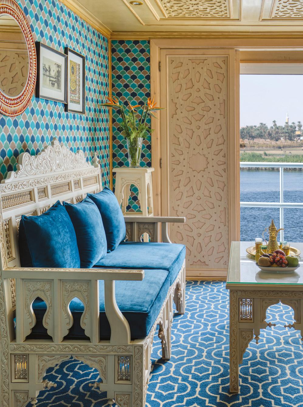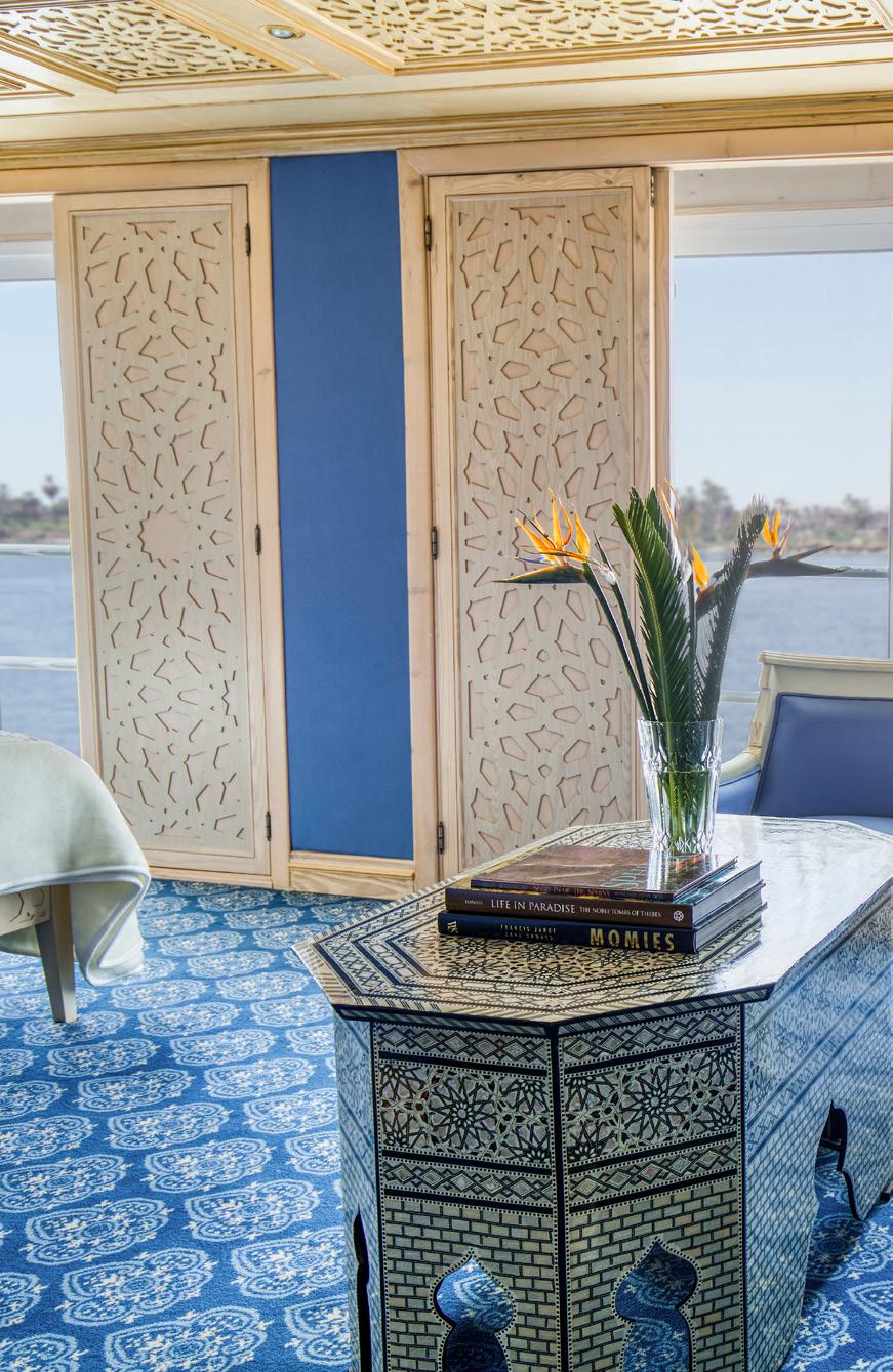 The S.S. Sphinx offers two gourmet dining venues, massage room, swimming pool, 26 gorgeously appointed suites and 16 stunning French balcony staterooms, not to mention, sweeping views of the longest river in the world. This Super Ship offers an immersive onboard experience, with bespoke décor by local artisans and materials sourced regionally -such as fine Egyptian cottons, marble and handcarved blonde wood-to highlight Egyptian craftsmanship while minimising our carbon footprint.