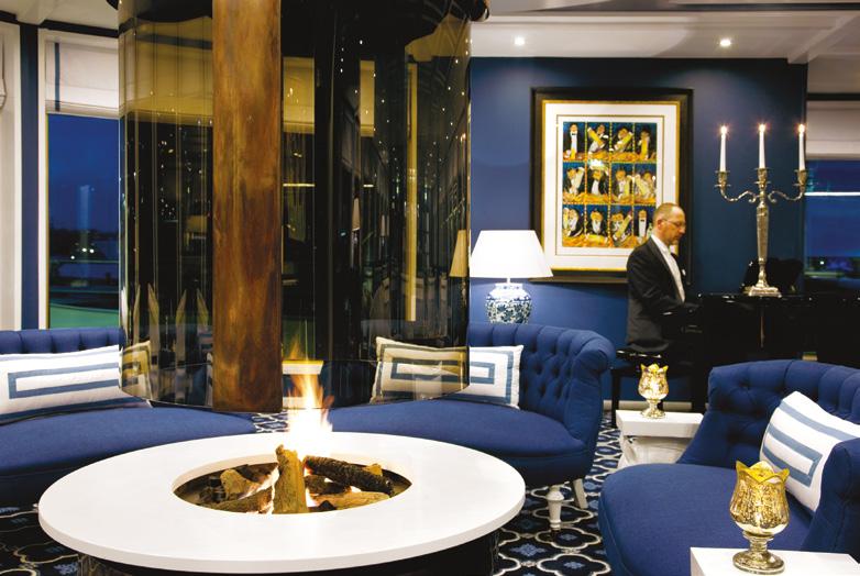 The luxurious décor of the 443-foot, 152-passenger S.S. Antoinette-Uniworld’s first Super Ship-features fine Brazilian marble on the walls and floors, a 19th-century Ven etian glass mirror, a stylish Bar du Leopard with full-service bar, and an onboard cinema. The two-s tory foyer boasts a 10-foot blue Strauss Baccarat chandelier with huge sapphires-a stunning piece that once hung in New York’s famous Tavern on the Green-and a collection of original artwork is displayed throughout the ship.