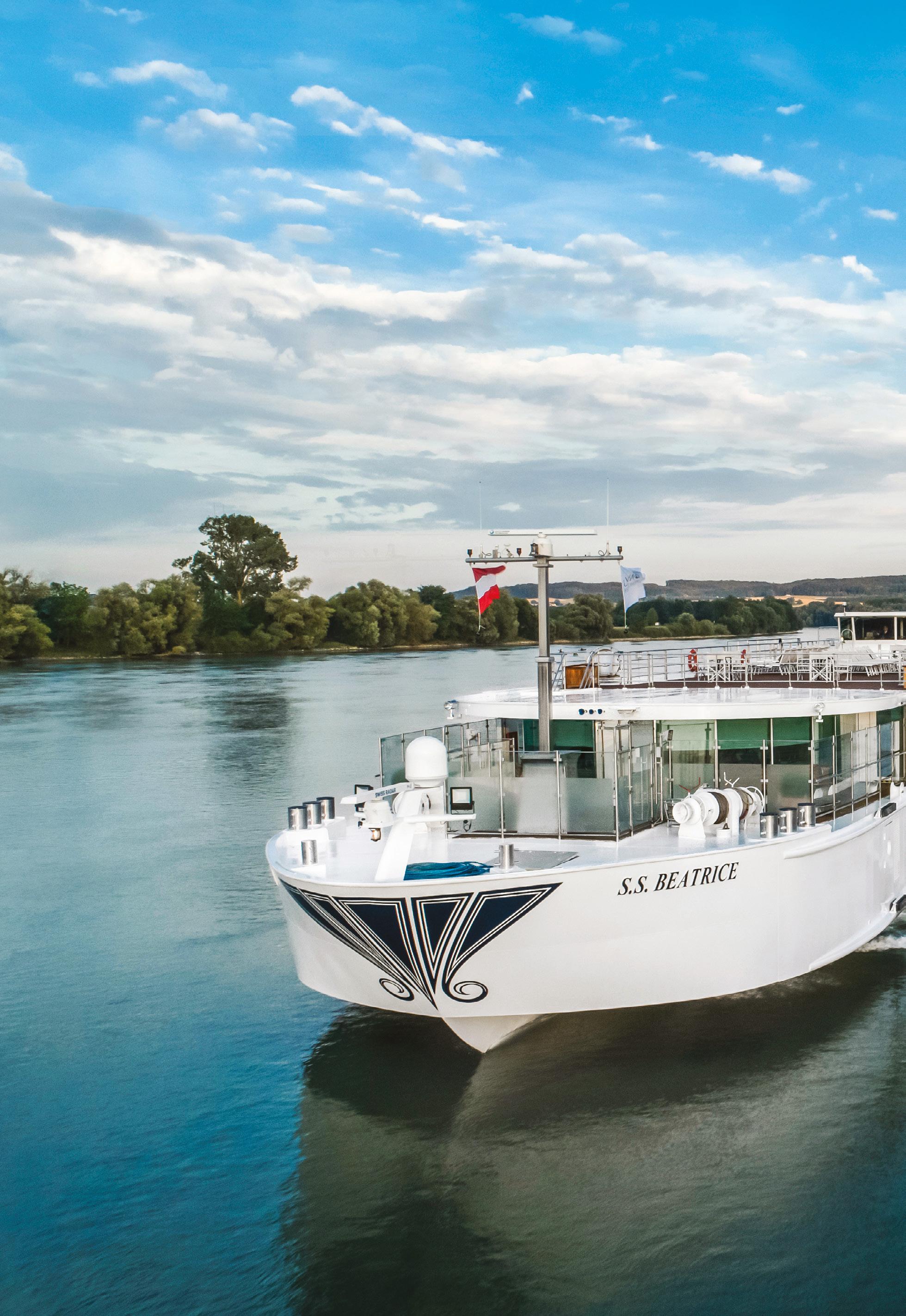 This jewel of a ship graces the waters of the Danube River, boasting splashes of nautical hues, a stunning lobby featuring elegant mirrors, marble floors, a white Murano chandelier and a grand staircase made of nickel and iron. The design inspirations include 14th-century Chinese porcelain and Dutch Delftware. S.S. Beatrice creates enhanced dining and culinary experiences by offering four unique venues, all inspired by famous Austrian composers.