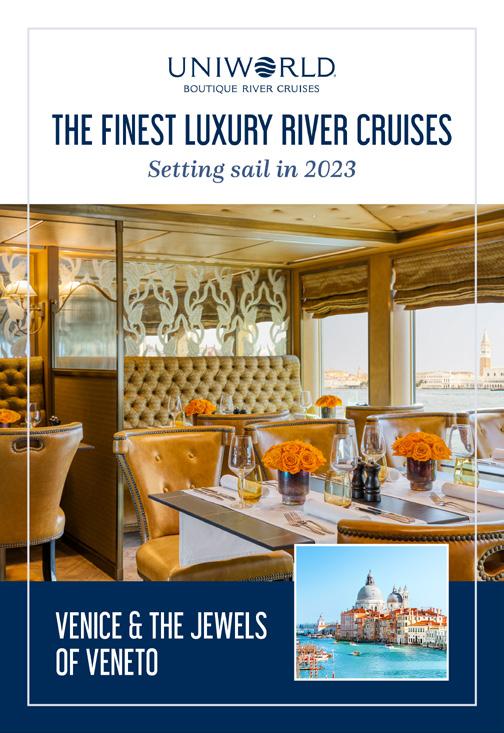 FOR LATEST PRICING INFORMATION CONTACT YOUR PREFERRED TRAVEL AGENT, VISIT UNIWORLD.COM OR CALL 0808 189 3670 See Uniworld.com for full terms and conditions. Uniworld Is a Registered Company Of The Travel Corporation UK Ltd - Travel House Rue Du Manoir St Peter Port Guernsey GY1 2JH ABTA No.Y6200 Discover the world with Uniworld River Cruises BRILLIANT BORDEAUX NO FLY LUXURY RIVER CRUISES WORLDWIDE COLLECTION VENICE & THE JEWELS OF VENETO See our full collection at uniworld.com