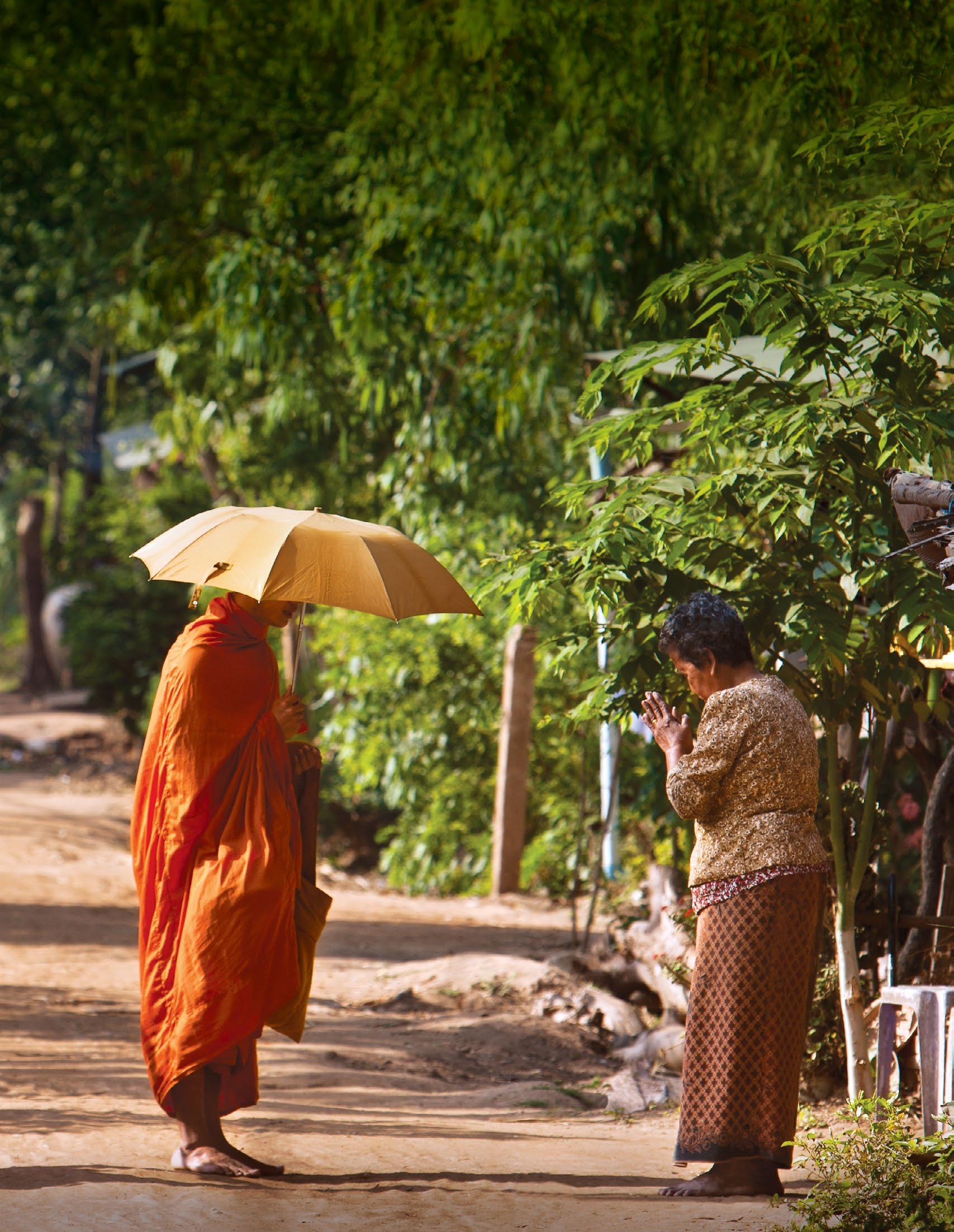 Cambodian Monk walking the peaceful village of Chong Koh