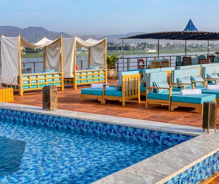 This all-suite ship is decorated with warm, wooden finishes and Egyptian antiques. Our guests love the shaded cabanas on the sun deck and the availability of a Generations Collection program for families traveling with children on select dates.