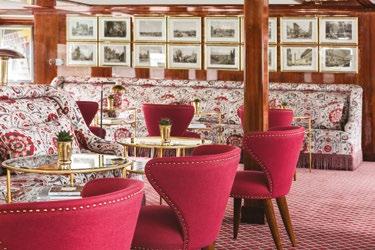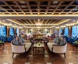The luxurious décor of the 443-foot, 152-passenger S.S. Antoinette-Uniworld’s first Super Ship-features fine Brazilian marble on the walls and floors, a 19th-century Ven etian glass mirror, a stylish Bar du Leopard with full-service bar, and an onboard cinema. The two-s tory foyer boasts a 10-foot blue Strauss Baccarat chandelier with huge sapphires-a stunning piece that once hung in New York’s famous Tavern on the Green-and a collection of original artwork is displayed throughout the ship.