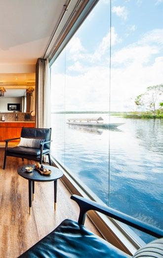 Designed to explore the heart of the Peruvian Amazon in luxury and comfort, the Aria Amazon is an all-suite ship with floor-to-ceiling windows, giving you a full view of the majestic rivers and rainforest. The top deck features a jacuzzi, indoor lounge & bar and an outdoor observation deck.
