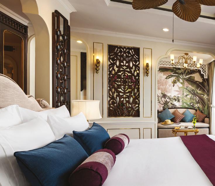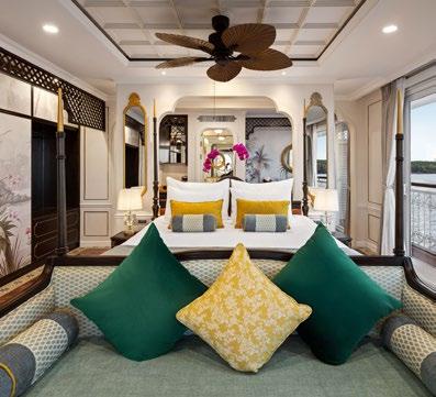The ship’s spacious, high-ceilinged suites are a serene sanctuary, with beautiful hand-painted murals and all the comforts of a five-star hotel.