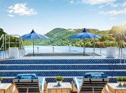 Enjoy the passing surroundings as you sail through the region of Bordeaux. Awash with vibrant fabrics, comfortable seating, and an infinity pool overlooking the French countryside, this area is likely to be your favourite onboard.