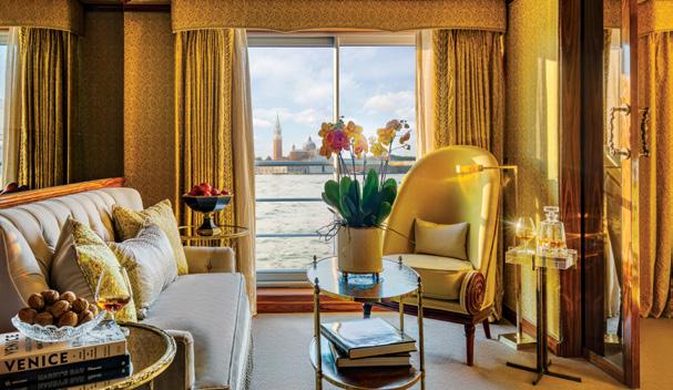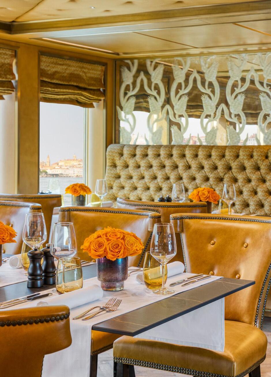 The S.S. La Venezia offers a vibrant yet sophisticated discovery of Venice and its s urrounding islands, and stands witness to Italy’s incomparable architecture, artistic contributions, world-renowned fashion and famed cuisine . The redesign of this Super Ship drew influence from the fine Fortuny fabrics displayed prominently onboard. Murano glass, gilded accents and artistic etched elements pay homage to popular Venetian aesthetics of the early 20th century.