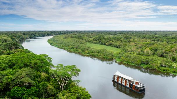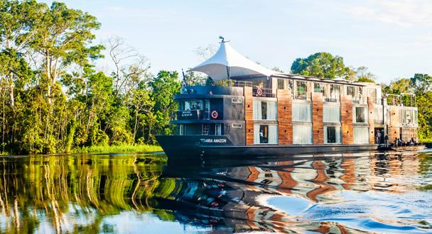 Designed to explore the heart of the Peruvian Amazon in luxury and comfort, the Aria Amazon is an all-suite ship with floor-to-ceiling windows, giving you a full view of the majestic rivers and rainforest. The top deck features a jacuzzi, indoor lounge & bar and an outdoor observation deck.
