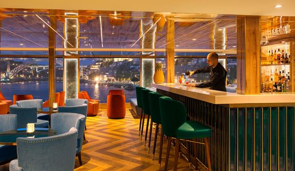 The S.S. Bon Voyage is designed to seamlessly immerse guests in the culture, art and wine of the France. A stunning lobby clad in polished wood, subtle brass details and a hand-crafted balustrade lend uncommon elegance, while the stylish sundeck boasts the river cruise industry’s first and only infinity pool. An onboard bar lounge, Le Salon du Champagne, is resplendent in chic emerald tones with a design inspired by Yves Saint Laurent’s personal abode, Villa Majorelle. In addition to the public spaces, the S.S. Bon Voyage features four spacious suites, and every stateroom features an exquisite marble bathroom. TRANSFORMATION