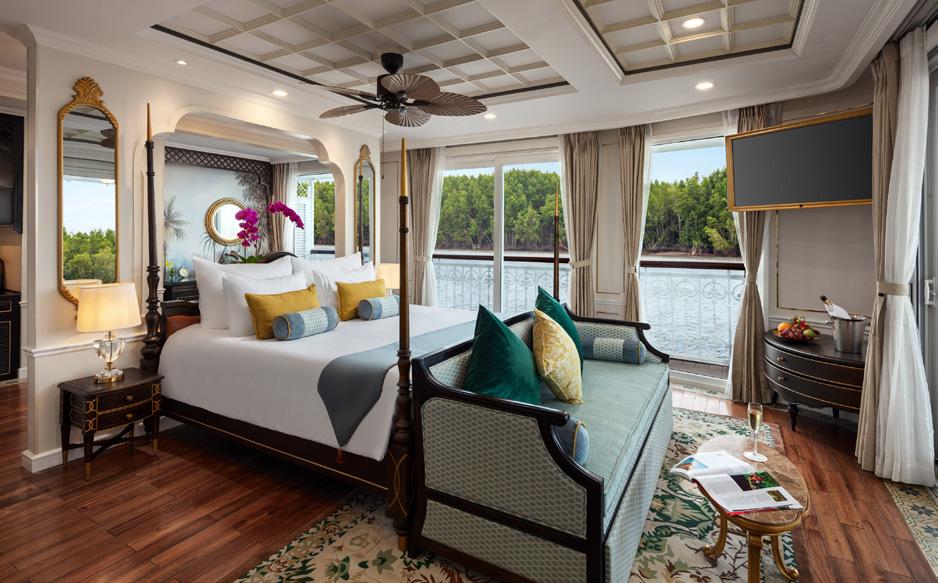 This incredibly spacious, multistory ship will have you charmed by your surroundings from the moment you step onboard. The all-suite Mekong Jewel is made of sustainable and ecofriendly materials and features artwork inspired by the landscapes of Vietnam and Cambodia, beautiful indoor and outdoor lounges, a pool, two dining venues and a wellness centre complete with a nail and hair bar. An experience like no other awaits you on the newest ship to grace the Mekong.