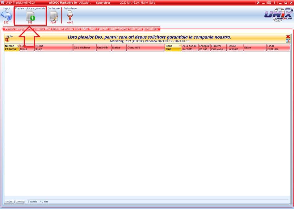 O schimbare importantă este că, în noul sistem, Partenerii noștri trebuie să completeze formularul garanțial. Un nou formular de solicitare garanțială poate fi inițiat din programul TradeLine și de pe pagina UNIX Webshop. Starea actuală a cererilor înregistrate prin una dintre aceste modalități poate fi urmărită cu ajutorul interfețelor de programe concepute în acest scop. 1. Accesați meniul Documente [F12] de pe ecranul principal al programului TradeLine 2. Lista solicitărilor garanțiale inițiate anterior.