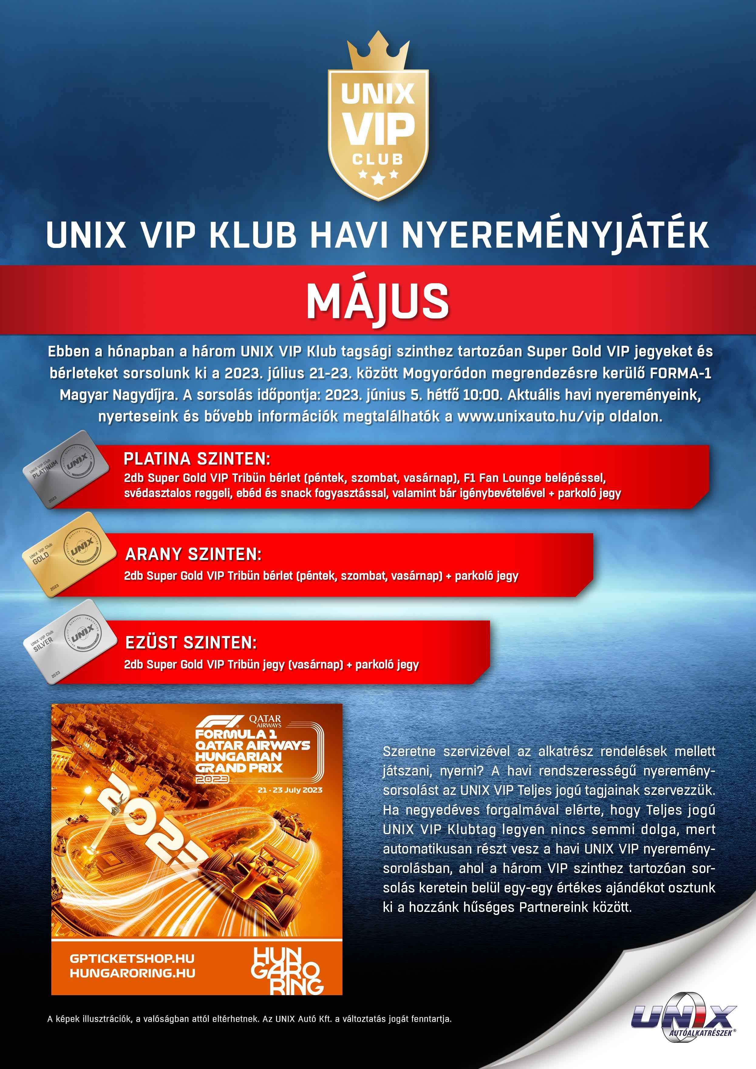36 UNIX VIP Klub - Májusi nyereményjáték: FORMA-1 Super Gold VIP jegyek és bérletek