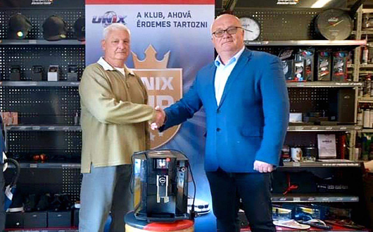A nyeremény átadásról készült képek pedig magukért beszélnek: az UNIX VIP Klubtagjaink boldogan veszik át a Kirendeltség vezetőktől a kávéfőzőket.