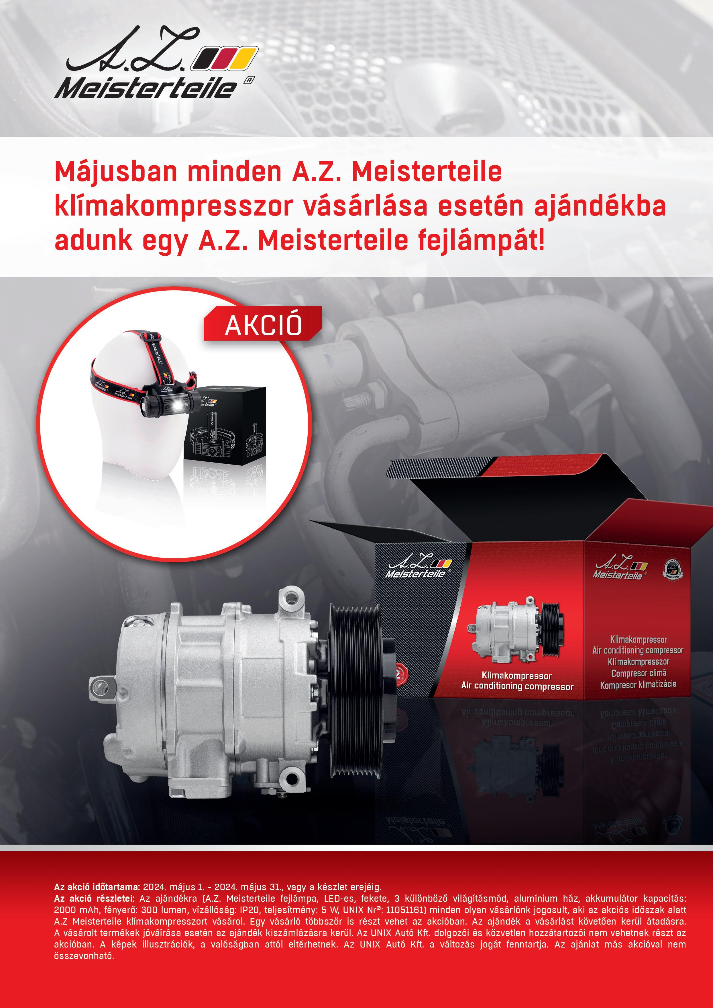 Az UNIX Autó által kínált A.Z. Meisterteile termékcsalád egyik legsikeresebb, legnépszerűbb tagjai a klímakompresszorok. A termékek a márkától megszokott minőségi színvonalon kínálnak megoldást partnereink számára.