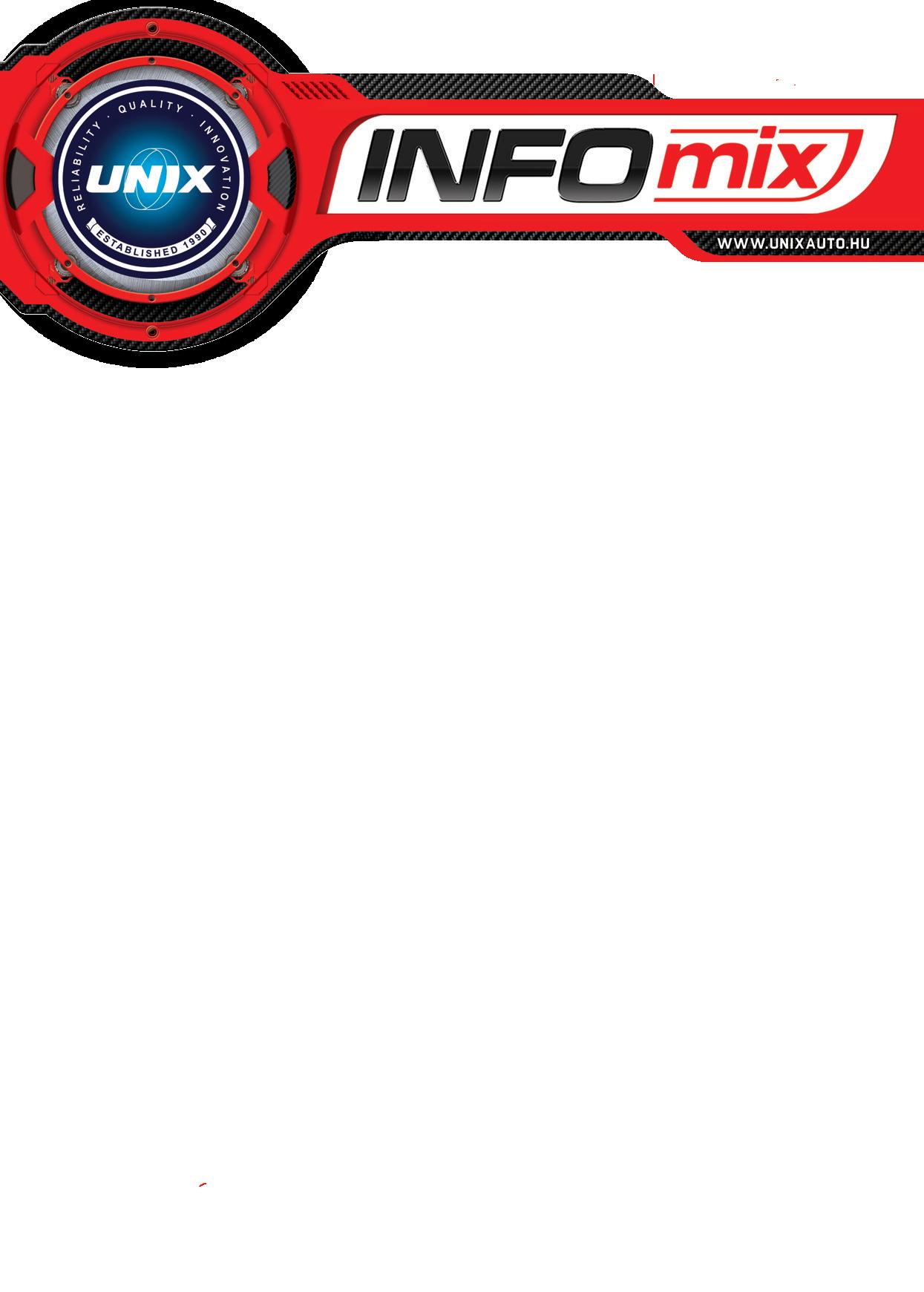 Az UNIX INFOmix az UNIX Autó Kft. információs lapja | Megjelenik havonta 20 000 példányban Szerkesztőség: 1139 Budapest, Frangepán u. 55-57. | Kapcsolat: www.unixauto.hu/kapcsolat Felelős kiadó: Zombori Antal | Az árak tájékoztató jellegűek, az esetleges változásokért és az újságban előforduló nyomdai hibákért felelősséget nem vállalunk.