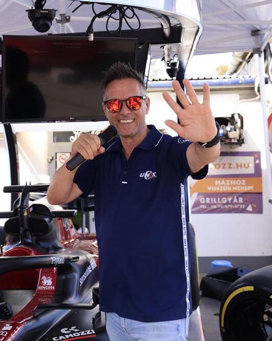 Száraz Ferenc, aki egyenesen az UNIX-AMTS nagyszínpadjáról érkezett az UNIX roadshow játékmesterének, hogy több évtizedes rutinjával támogassa az F1 kerékcsere-versenyre nevezőket