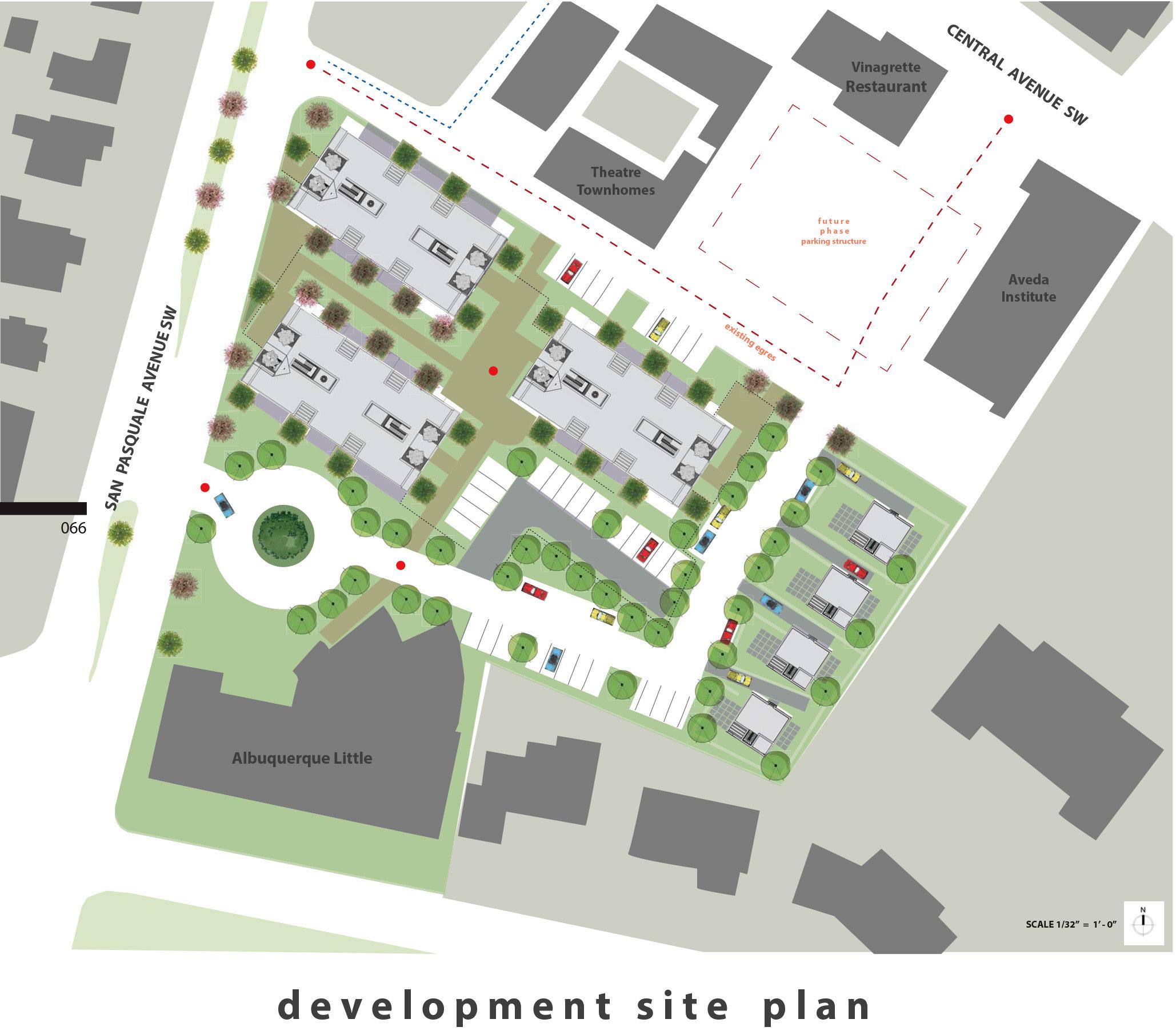 To the north, the Sycamore neighborhood was platted as Brownewell and Lail’s Highland Addition in 1886. It is defined by I-25 and University Boulevard, and Martin Luther King Jr Avenue and Central. Neither Brownewell nor Terrace saw much housing or commercial development until 1910, when Huning Highland was completed. Sycamore is the site of an abundance of vintage multifamily housing, with some remaining historic homes built primarily in the ‘30s and ‘40s. Today Presbyterian Hospital, which has historically been the area’s dominant land owner and has developed much in its vicinity, is working with Titan Development and the Mestas Development Group to create a mixed use property with a hotel, street-level retail and 74 apartment units. The 10 acre property spans five city blocks within Sycamore and had been largely vacant for decades.