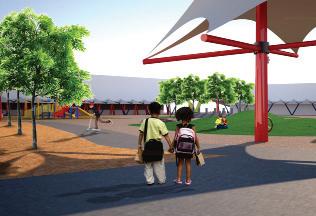 1. Propose a new master plan for new buildings, parking and playground that integrates with the surrounding community plan for circulation.