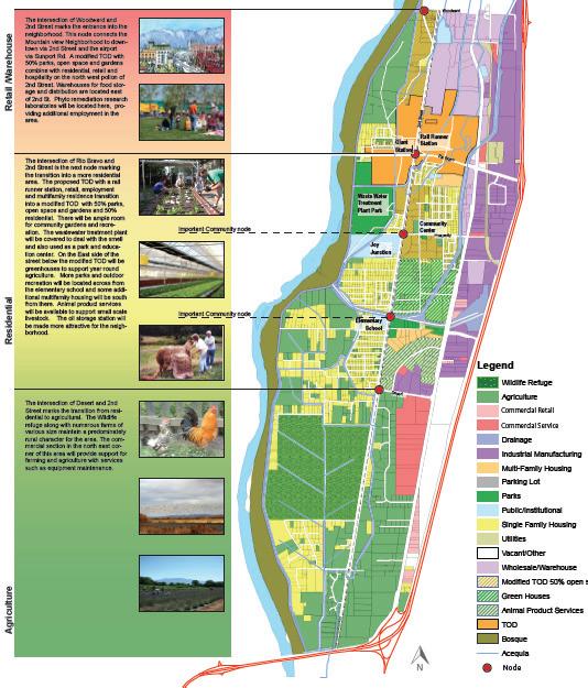 MOUNTAIN VIEW COMMUNITY 19 PRINCE ACRES B ERENICE G RA j A l VA , MARC h PRINCE + RIO BRAVO MIXED USE DEVE l OPMENT FIRE STATION EXISTING RESIDENTIAL AREA EXISTING RESIDENTIAL AREA VETENARY HOSPITAL 2ND STREET 2ND STREET RIO BRAVO BLVD. GORE AVE. WALLACE ST. SHELDON ST. GRAPE CIR. KING RD. RIOBRAVOBLVD. NEW MEXICO RAIL RUNNER STATION TRANSIT ORIENTED DEVELOPMENT (TOD) LEGEND SCALE 1” : 100’ N ROUND ABOUT MIXED USE- RETAIL, RESTAURANTS, OFFICE, SALES W/ RESIDENTIAL ABOVE PUBLIC FACILITIES/MIXED USE RETAIL COURTYARDS A PLACE TO DISPLAY PUBLIC ART PUBLIC PARKS OPEN SPACE MUD VOLLEYBALL AREA (NOT PAVED) PARKING AND STREETS RESIDENTIAL MIXED USE- RETAIL, RESTAURANTS, OFFICES, SALES BUSINESS & COMMERCIAL SERVICES - LOCAL GROCERY STORE (SMITHS OR LOWES) PROPOSED MASTER PLAN BROADWAY BLVD. WATER CHANNEL PROPOSED BIKE ROUTE BANK GROCERY STORE FARMERS MARKET LEARNING CENTER FLEA MARKET PRINCE RD. PUBLIC FACILITIES PREC FARM SECT RD 002
