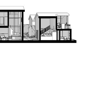Inspired by the patch of blue sky amongst the dense tree canopy. The heavy masonry form wraps around this clearing, elevating the gathering area to capture the