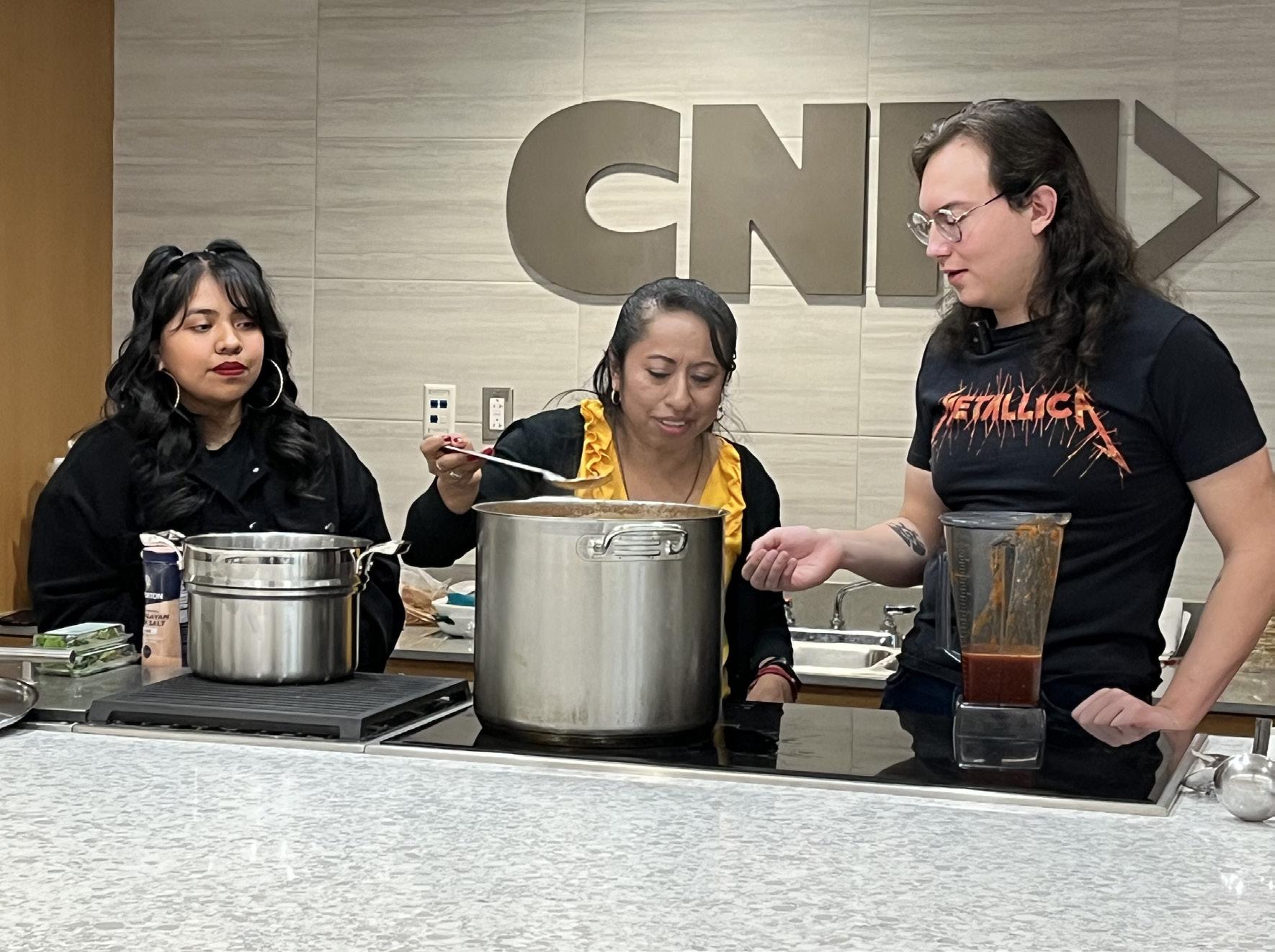 a lot during this hands-on experience. We made caldoh tlen piyomeh chichiltic, red chile chicken soup. The event was in Nahuatl, and it was good to practice cooking terminology; such as tehtequi (to cut), molonia (to boil) and poyeltia (to season). I also learned a lot about cultural cooking practices. For example, I didn’t know that there was a specific way to cut chicken for different foods in Tecomate.