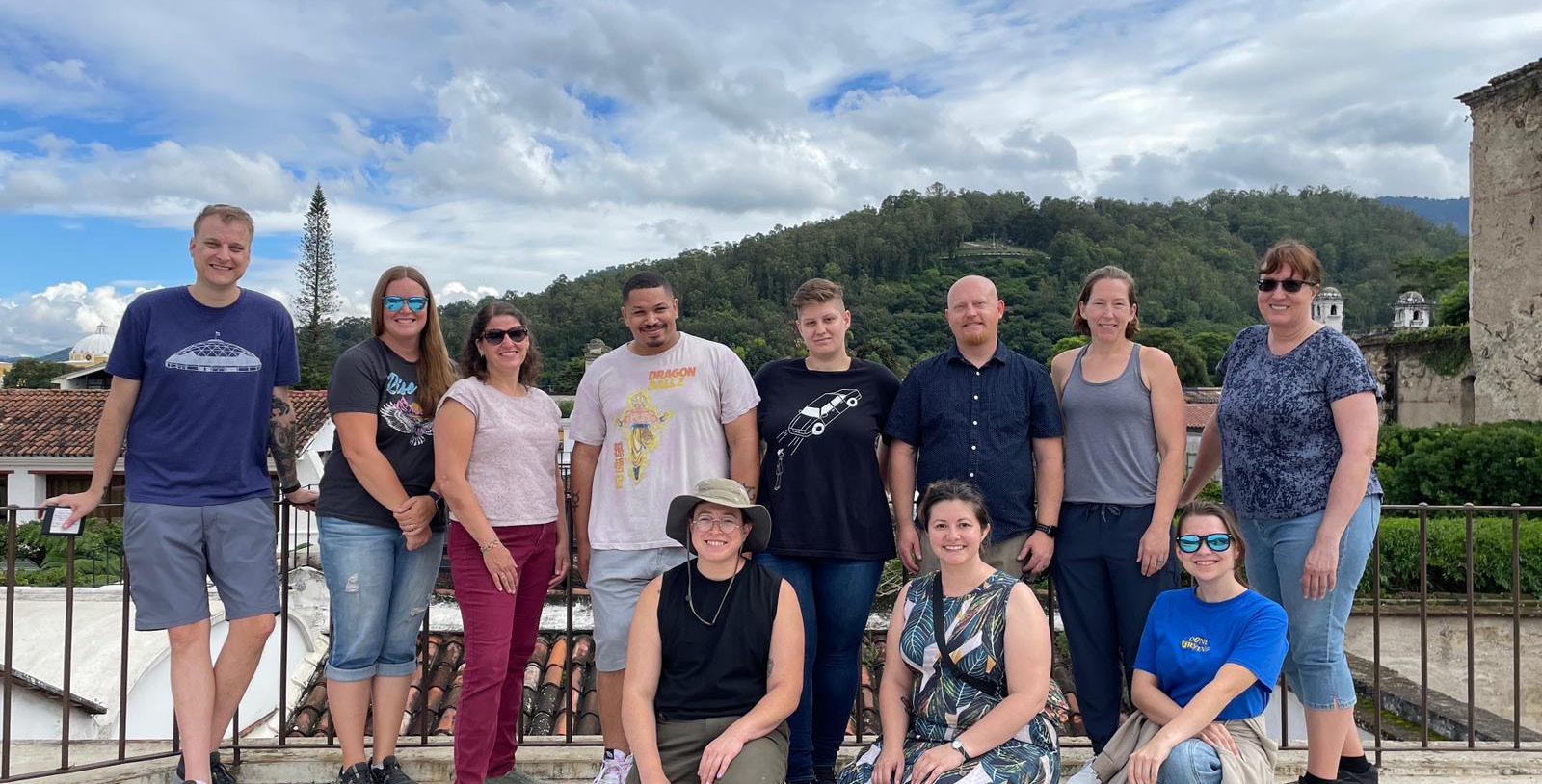 The centerpiece of the collaboration with CNM was a study abroad program to Antigua, Guatemala. The course took place during the 2023 fall intersession term, August 7-27, and nine students spent nine days in Guatemala (August 14-22). Dr. Jessica Craig and Dr. Brandon Morgan were the program’s faculty leaders. Students stayed with local families, and they visited Mayan communities where they observed and engaged with artisanal traditions that allow various Mayan peoples to preserve their languages and cultures while supporting their communities economically. Significantly, the course was designed as a short-term, low-cost study abroad program that would allow underserved students access to international, in-country education.