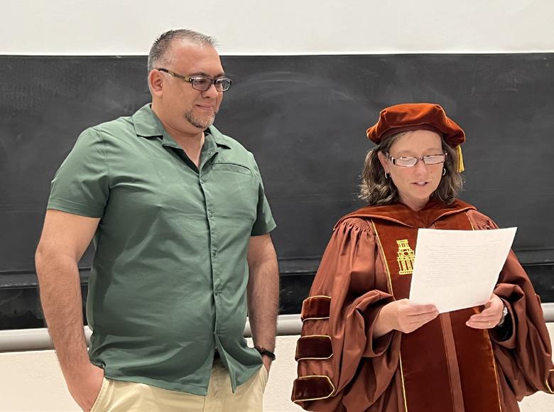 to explore the actual act of migrating to the U.S. and the immigration and asylum policies in place upon arrival. Dr. Gauderman partnered with the New Mexico Immigrant Law Center and filmmaker J.C. Ramírez to ensure full understanding of the immigration process, from the role of U.S. border enforcement and its effects in Mexico and Central America, to detention centers here in New Mexico. This course coincided perfectly with Dr. Gauderman’s newest book Practicing Asylum, which was published in 2023. Dr. Gauderman’s commitment to communityengaged scholarship was recognized at an institutional level when she was awarded the 2024 Annual Community Engaged Research Lecture Award.