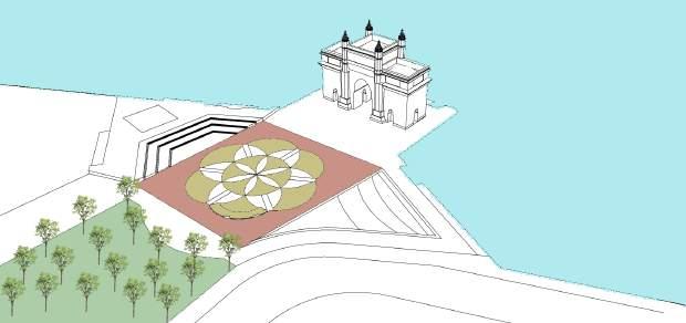 Blending neoclassic features of existing building with landscape. Public space - At entrence seating spaces are provides so that visitors can wait and rest . Fountains along with seating under palm tree .
