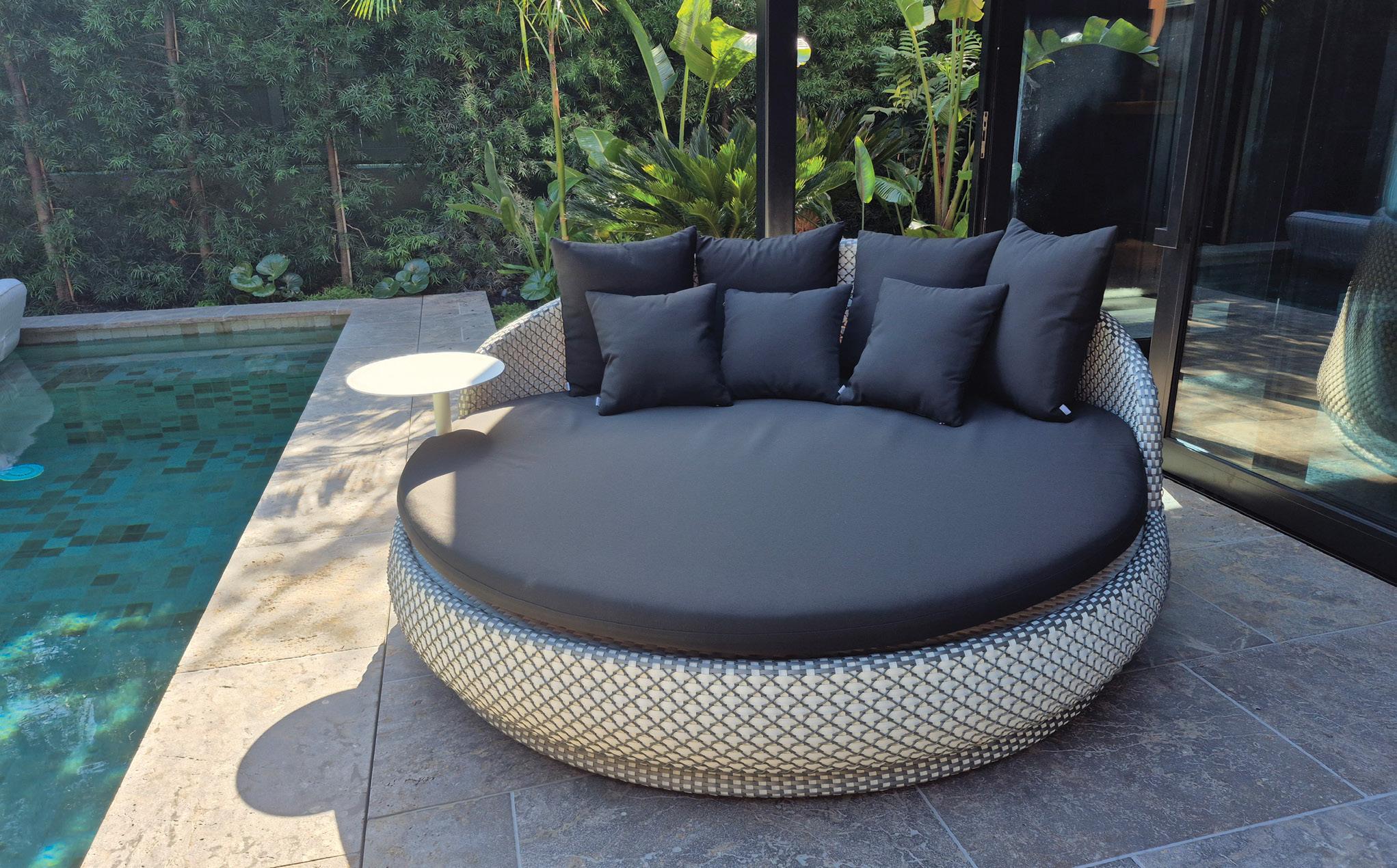 The striking feature of our KALI collection is the spherical and curved silhouette, which stands out due to the unique connection of two weaving fibers. The innovative 360° rotation mechanism of the lounge chair allows you and your guests a high level of flexibility and freedom of movement in the smallest of spaces.