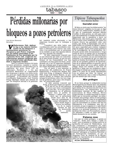 tal, también están afectando a las empresas locales que le trabajan a Pemex. Consideró que debe haber una coordinación entre las autoridades estatales y federales para buscar una solución a los problemas que se presentan en la entidad, ya que hay algunos líderes que han abusado del sistema. El líder empresarial comentó que es una situación que debe ser solucionada lo más pronto posible, ya que los problemas en las comunidades son una constante y no hay quien los frene, perjudicando así a las 10 empresas tabasqueñas que trabajan para la paraestatal y de las cuales dependen muchas familias. Por su parte y tras lamentar la declaración del subdirector de Pemex Exploración y Producción Región Sur, José Luis Fong, el dirigente estatal del PAN, Jorge Luis Ávalos Ramón, se pronunció porque se busque una solución integral al problema entre los tres órganos de gobierno, pues una o dos despensas, “no solucionan nada”. El líder panista comentó que Fong, al decir que Pemex no invertirá 20 mil de los 50 mil millones de pesos que tenía contemplado para este año, “se ve que pretende chantajear no al gobierno estatal sino al pueblo de Tabasco y habría que recodarle que la paraestatal desde hace más de 20 años ha contaminado el campo tabasqueño, las aguas donde llegan a pescar los habitantes de la región además de que ha deteriorado el medio ambiente.