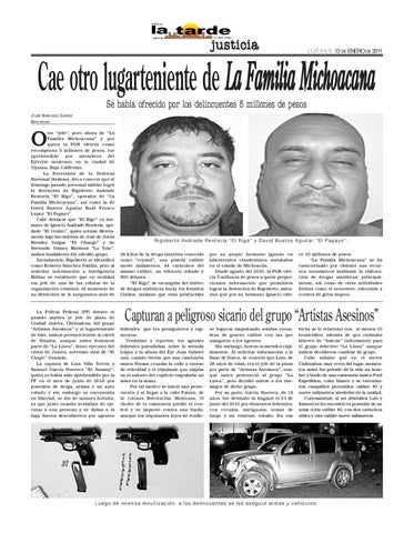 Cae otro lugarteniente de La Familia Michoacana Se había ofrecido por los delincuentes 5 millones de pesos JOSÉ SÁNCHEZ LÓPEZ REPORTERO