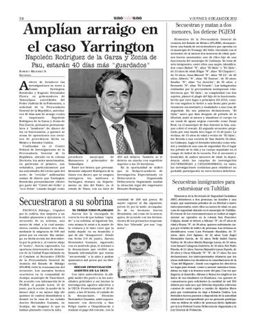efecto de fortalecer las investigaciones en torno a Tomás Yarrington Ruvalcaba y Eugenio Hernández Flores, ex gobernadores de Tamaulipas, autoridades del Poder Judicial de la Federación, a solicitud de la Procuraduría General de la República, autorizaron 40 días más de arraigo contra el empresario Napoleón Rodríguez de la Garza y Zonia de Pau García, presuntos prestanombres y "lavadores" de dinero de los ex funcionarios, a quienes se acusa de operaciones con recursos de procedencia ilícita en México y Estados Unidos. Confinadas en el Centro Federal de Investigaciones de la Procuraduría General de la República, ubicado en la colonia Doctores, los antes mencionados, en particular el primero, son señalados, particularmente por las autoridades del vecino país del norte, de "reciclar" millonarias sumas de dinero que Yarrington Ruvalcaba presuntamente obtuvo por parte del "Cártel del Golfo" y "Los Zetas" cuando fungió como