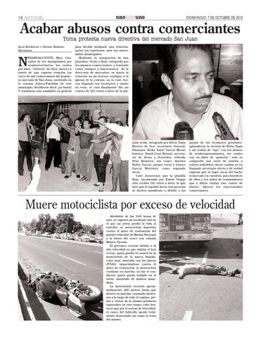 Muere motociclista por exceso de velocidad Alrededor de las 9:00 horas de ayer, se registró un accidente vial en el que un joven perdió la vida al estrellar su motocicleta deportiva contra el muro de contención del puente vehicular de Marina Nacional a la altura del cruce con calzada México Tacuba. El percance ocurrió debido a la alta velocidad en que viajaba el hoy occiso, quien perdió el control de la motocicleta de la marca Suzuki, color azul, marcada con las placas JT5AG, impactándose contra el muro de contención; la motocicleta continuó en marcha, ya sin el conductor, quien quedo tendido en el suelo, muriendo de manera inmediata. La motocicleta recorrió aproximadamente 200 metros hasta que detuvo su marcha, causando destrozos a lo largo de todo el camino, piezas y restos de la misma quedaron esparcidos en este tramo; cabe destacar que por el exceso de velocidad, el casco del fallecido quedo totalmente destrozado así como la testa del mismo.