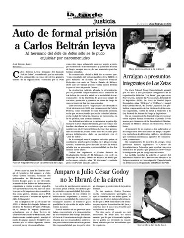 Auto de formal prisión a Carlos Beltrán leyva Al hermano del Jefe de Jefes sólo se le pudo enjuiciar por narcomenudeo JOSÉ SÁNCHEZ LÓPEZ REPORTERO