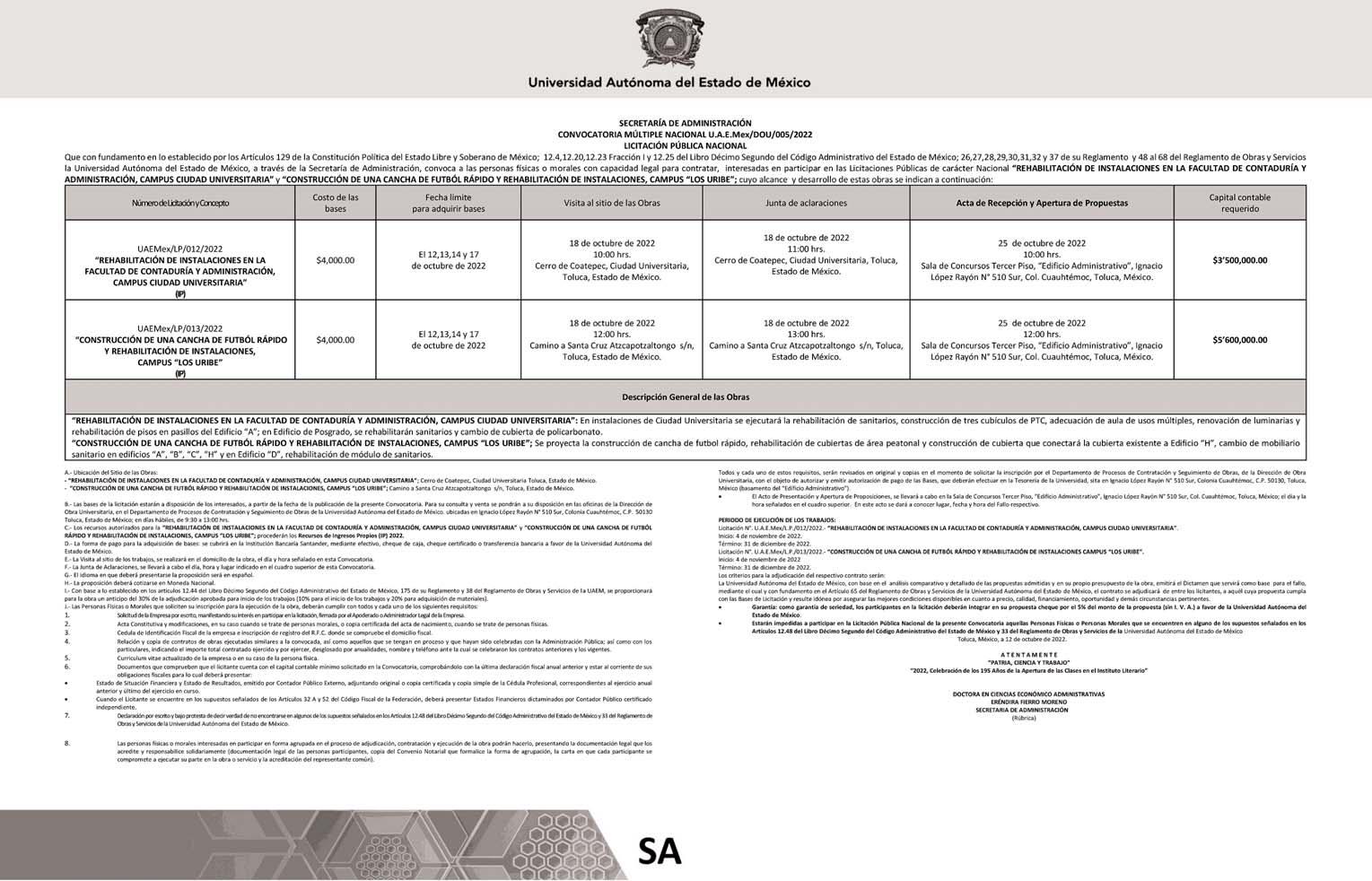 2 ZONA UNO MIERCOLES 12 DE OCTUBRE 2022 AVISO DE PRIVACIDAD Arrendadora Multiusos,S.A.de C.V.con domicilio en Paseo Tollocán Número 617 Colonia Valle Verde Toluca,Estado de México Código Postal 50140 comunica que los datos personales o información de alguna persona física identificada o identificable son recabados de manera lícita y tratados observando los principios de licitud,consentimiento,información,calidad,finalidad,lealtad,proporcionalidad y responsabilidad previstos en la Ley Federal de Protección de Datos Personales en Posesión de los Particulares,entendiendo la confianza que deposita el titular de la información recabada directa o indirectamente por Arrendadora Multiusos,S.A.de C.V. respecto que los datos personales proporcionados serán tratados conforme los términos establecidos en la ley de referencia,estableciendo y manteniendo medidas de seguridad administrativas,técnicas y físicas que permitan proteger los datos personales contra daño,pérdida,alteración,destrucción o el uso,acceso o tratamiento no autorizado,como si se tratara de información propia de Arrendadora Multiusos,S.A.de C.V.al tomar en cuenta el riesgo existente,las posibles consecuencias para los titulares,la sensibilidad de los datos y el desarrollo