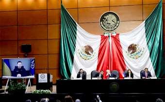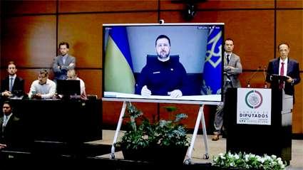 "Creo que con la ayuda de México,eso podría ser más rápido", dijo en videoconferencia en la Cámara de Diputados. Zelenski agradeció el apoyo mexicano por la ayuda humanitaria y las terapias de rehabilitación para personas heridas o perjudicadas por la invasión de las fuerzas deVladimir Putin.