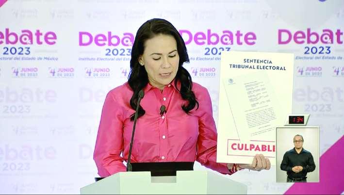 Gómezganóelprimerdebatepor EstadodeMéxico!Conelbrazoen sonrisadesatisfacción,lacandidata PartidoVerdeabandonólaSaladel InstitutoElectoraldelEstadode