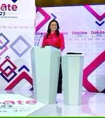 "Eslaoportunidaddequegobernemos propuestaselaboradasnodesdeel propuestasquenoshanentregadolos vamosaganaresagranbatalla",expresó nistaDelfinaGómez. Ensuintervencióneneldebate,lamaestra fueenfáticaalexponersuspropuestas cuatrotemasquerigieronelencuentro oposición:"Combatealacorrupción", género","Serviciospúblicos",y ción".