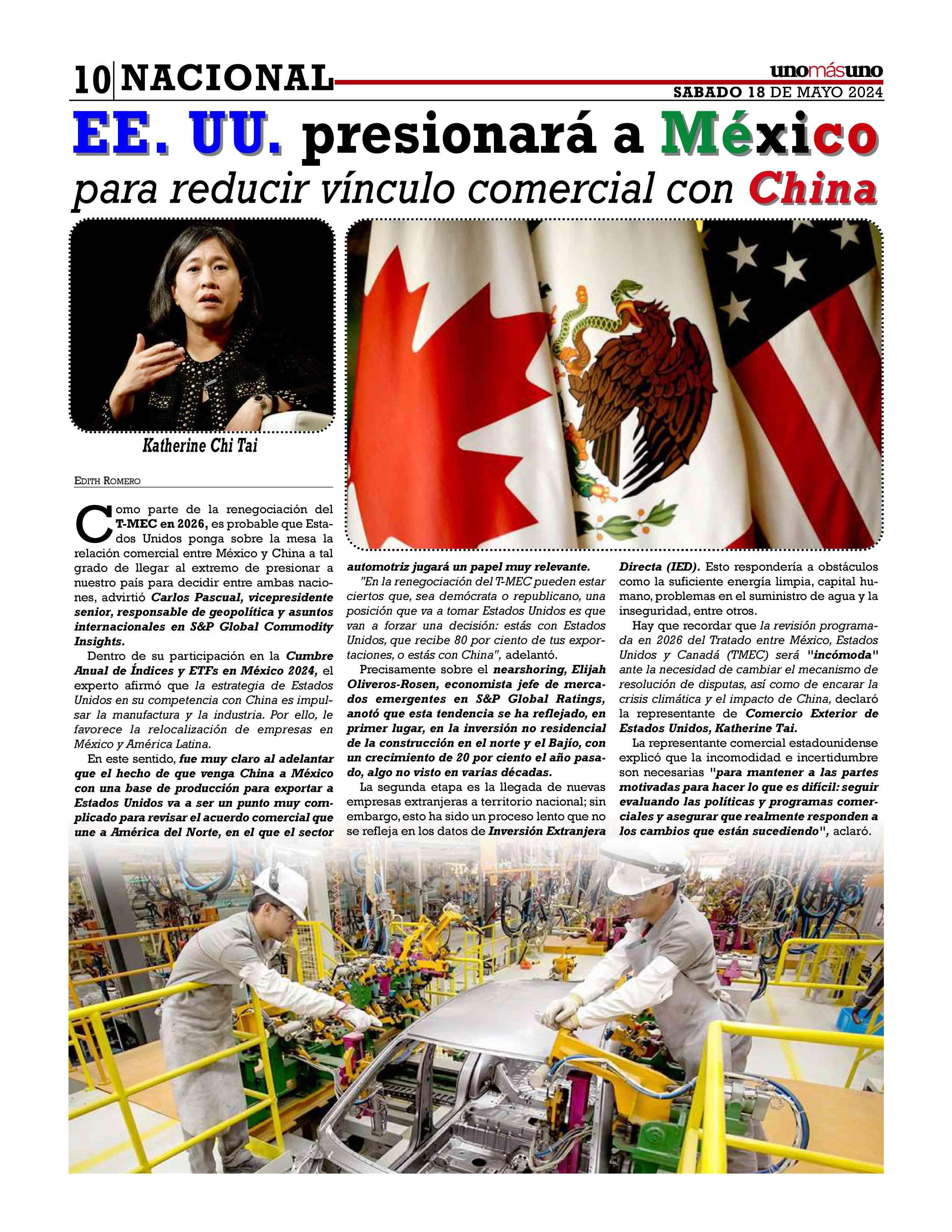 EE.UU. EE.UU. presionaráa Mé Méxixico copara reducirvínculo comercialcon China China