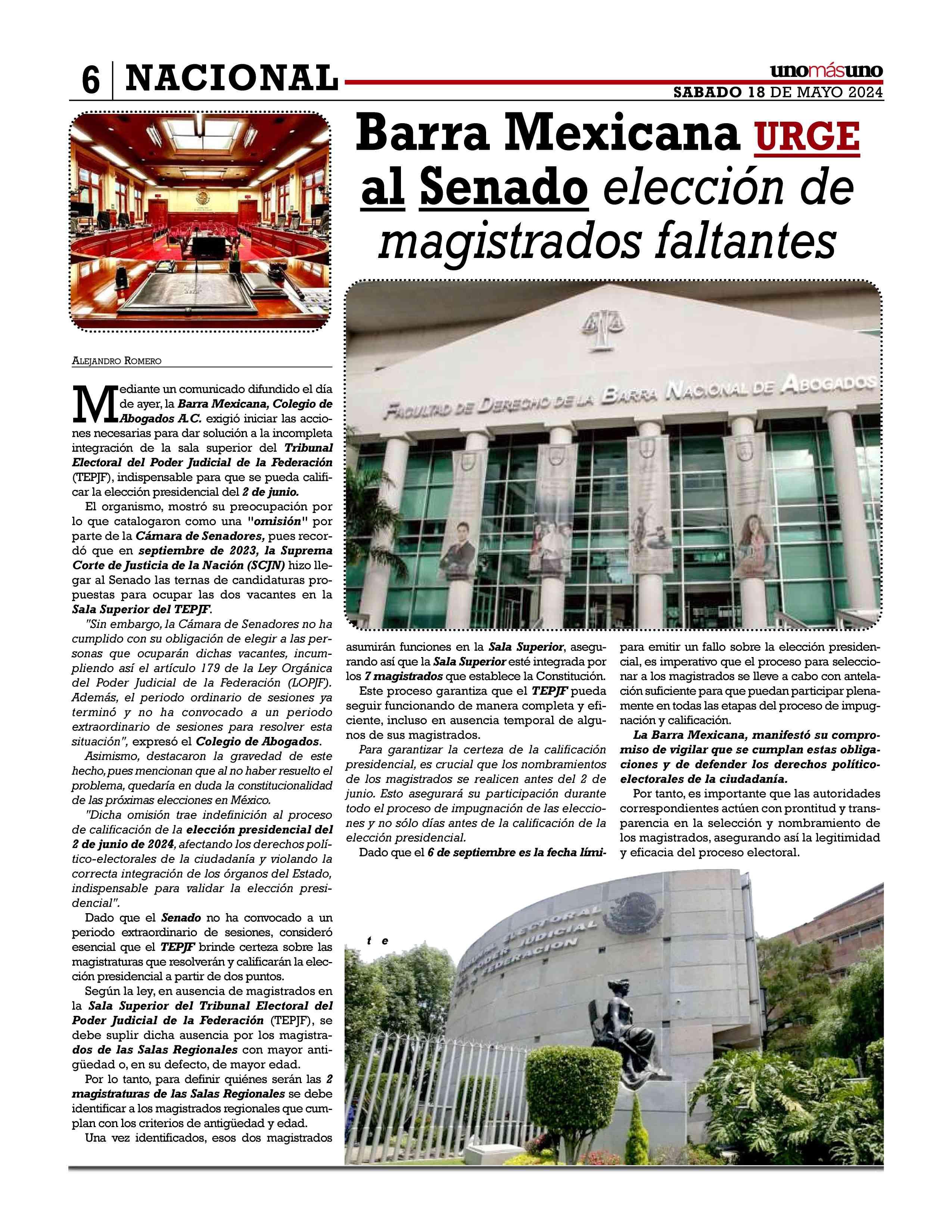 8 SABADO 18 DE MAYO 2024 NACIONAL