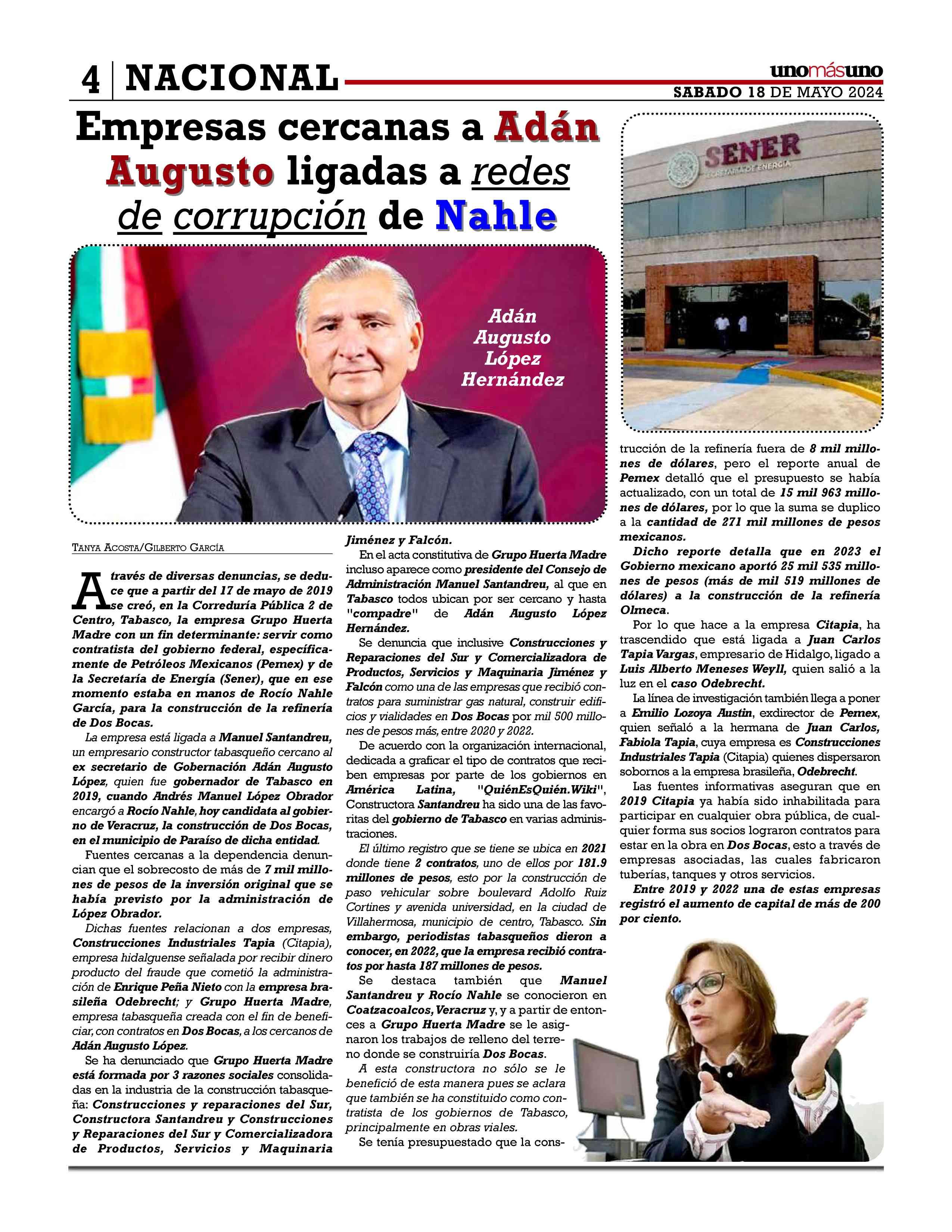 Empresas cercanasaAdán Adán Augusto, Augusto,ligadasa redesdecorrupción deRocíoRocíoNahle Nahle P.4
