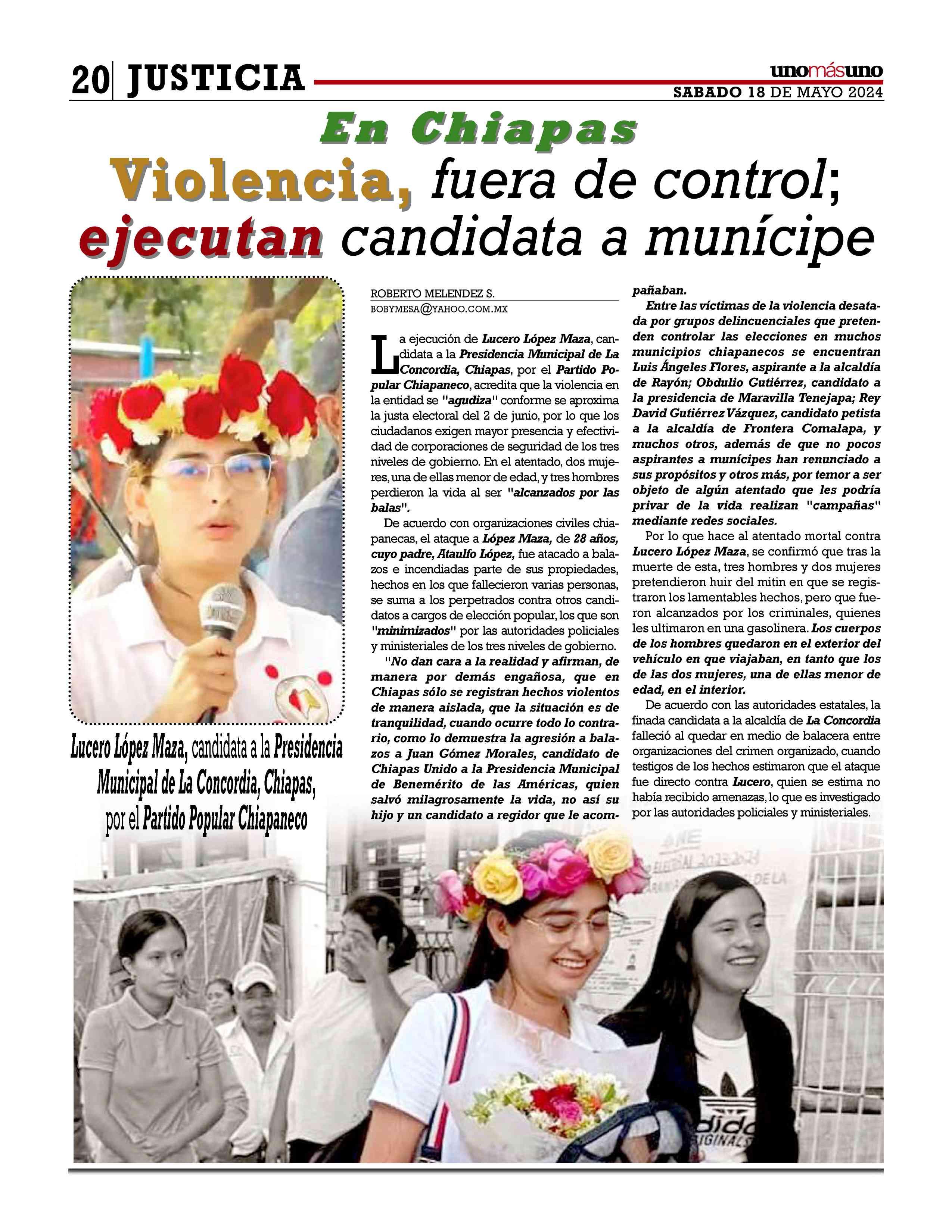 También es importante mencionar que candidatos y candidatas de todos los partidos y coaliciones han sido víctimas de violencia letal,agregó el Seminario.
