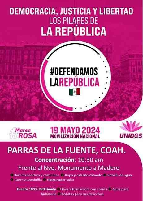 Más de 90 ciudades del país ya se sumaron a la concentración de la Marea Rosa delpróximo 19de mayo, en la cual participará la candidata a la presidencia de la coalición "Fuerza y Corazón por México",integrada por los partidos PAN,PRI y PRD, Xóchitl Gálvez Ruiz, y el candidato a jefe de Gobierno de la Ciudad de México, Santiago Taboada Cortina.