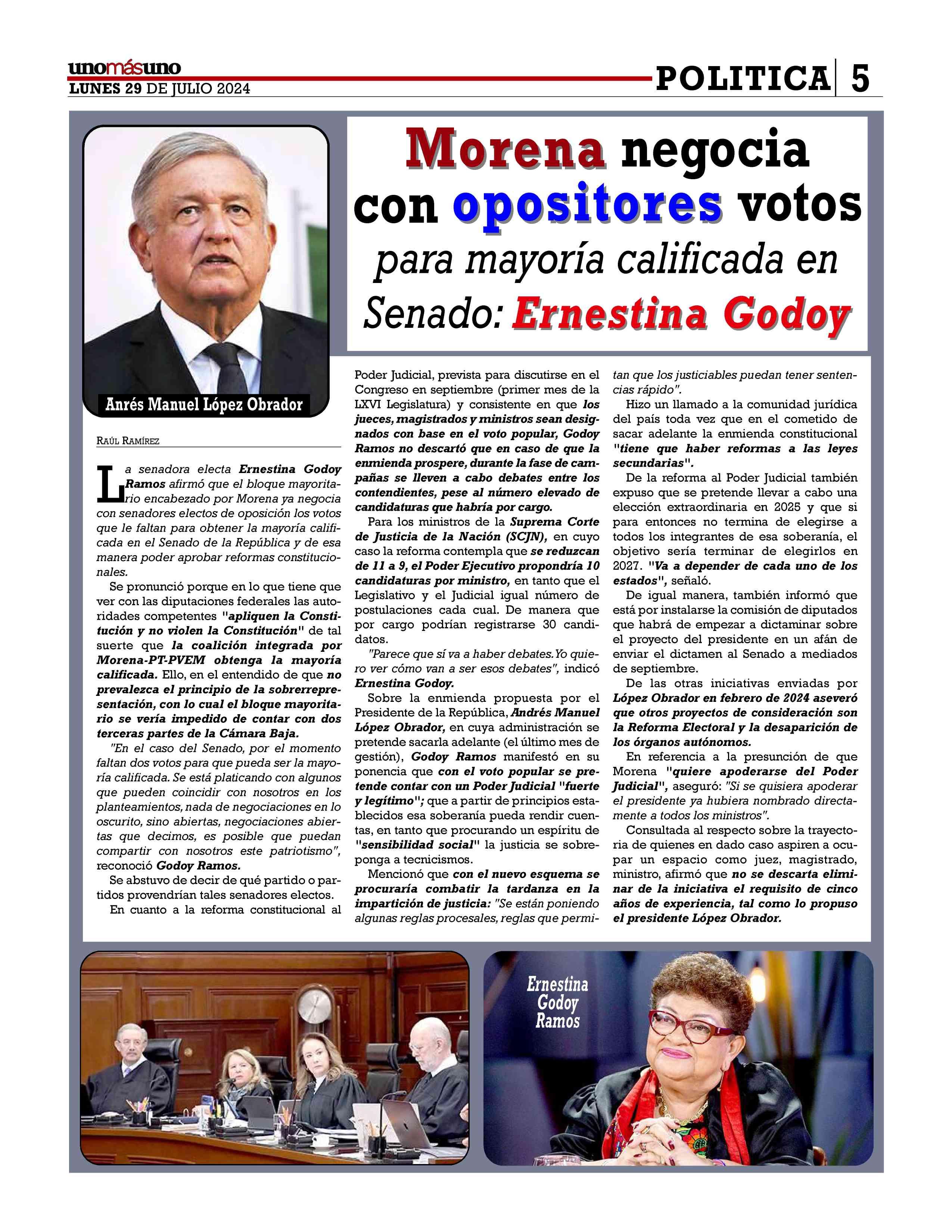 AñoXLV-Número16241Lunes29dejulio2024 UNOMÁSUNONACIONAL.EditorResponsable:NAIM LIBIENKAUI.Publicacióndiaria,editadaydistribuidaporLIBIEN &SON’SSAdeCVentalleresdeGabinoBarreda86bis.Col.San Rafael,CiudaddeMéxico,C.P.06470,DelegaciónCuauhtémoc TeléfonoCDMX:55/10555500.Ext.Redacción102-103y105, PlantaToluca017221340000Ext.116. Losartículosynotaspublicadosenesta edición,sonresponsabilidaddequienlosfirma.