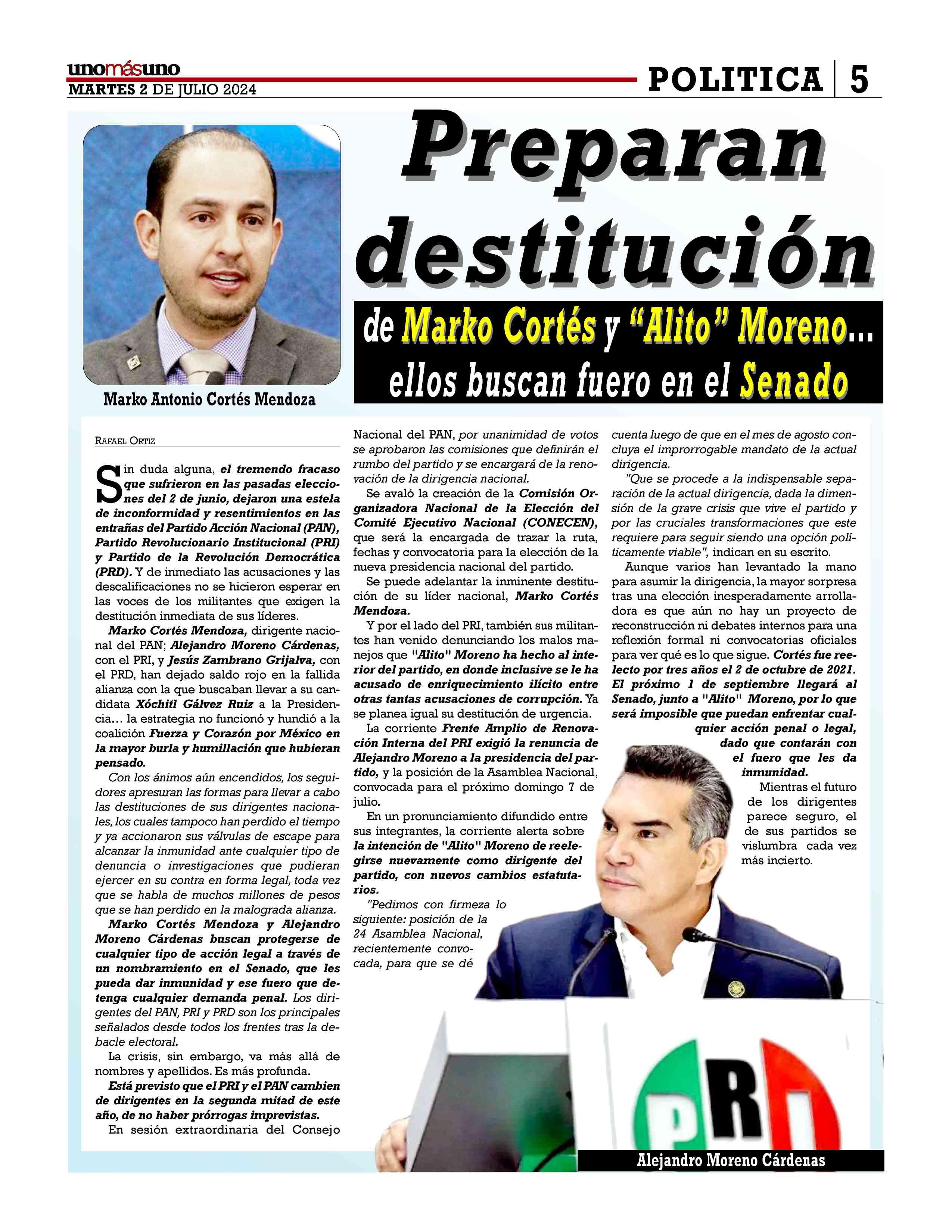 Preparan Preparan destitución destituciónde MarkoCortésy MarkoCortésy “Alito”Moreno “Alito”Moreno